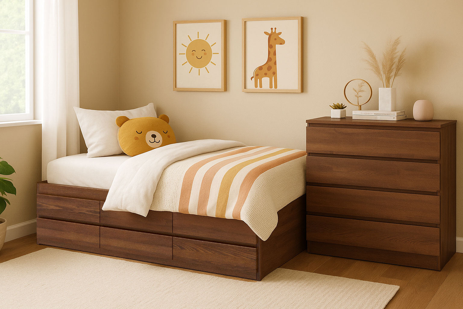 The clean, timeless design works equally well in kids’ rooms and adult bedrooms, making it a lasting choice for any stage of life and offering long-term versatility.