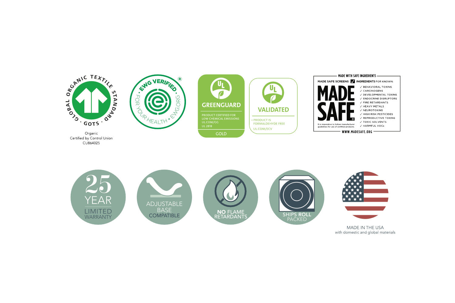 Sleep soundly on the world's most certified organic mattresses and bedding. Naturepedic replaces synthetic foams and flame retardants with certified organic cotton and wool, and GOLS-certified organic latex. These materials are EWG VERIFIED® and MADE SAFE® certified, ensuring a sleep environment free from fiberglass, formaldehyde, and harmful volatile organic compounds (VOCs).