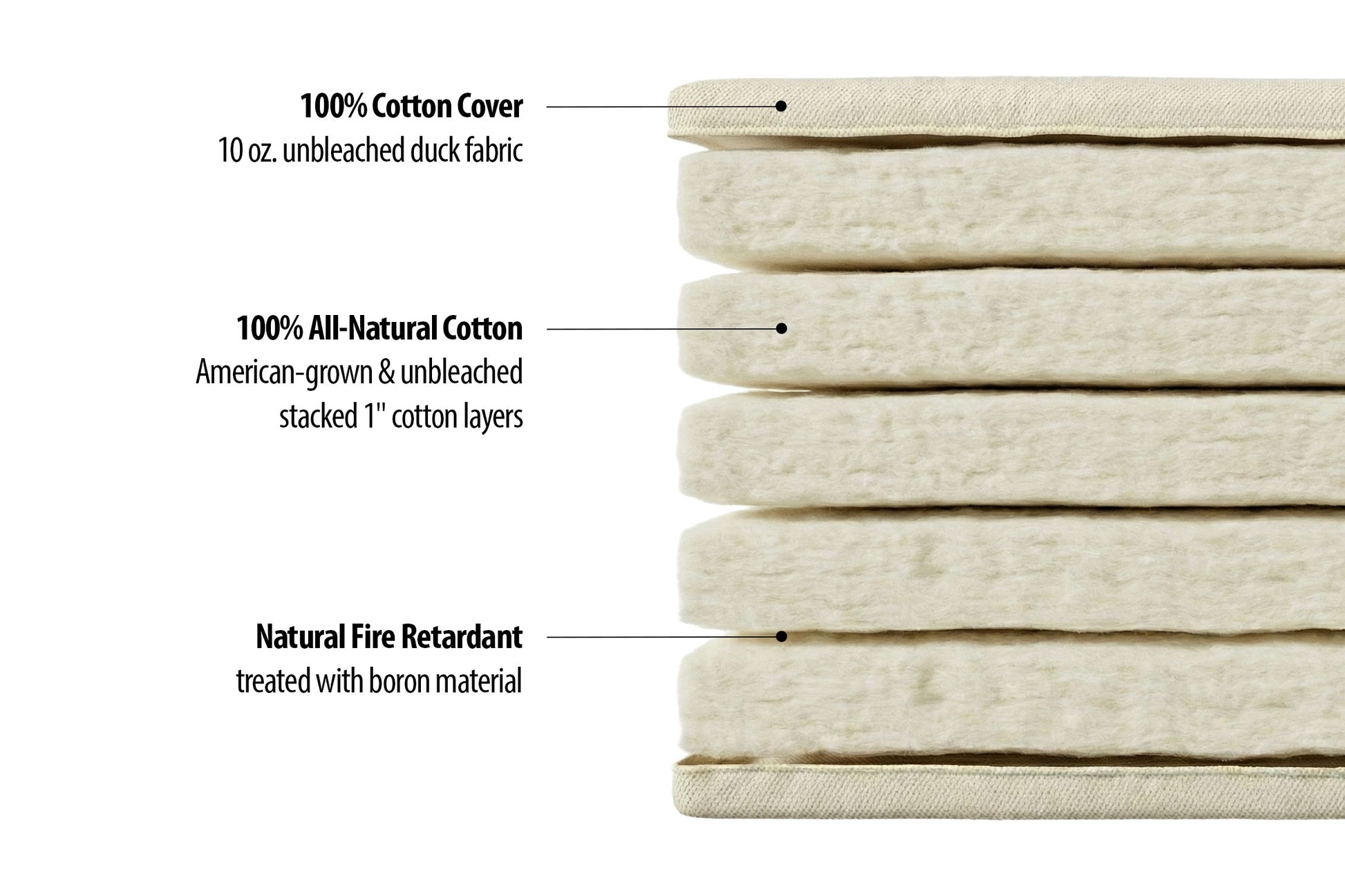 All-natural Japanese shiki futon mattress made from pure cotton. This authentic mattress features natural cotton batting. It meets US fire retardant standards by using a natural boron material.