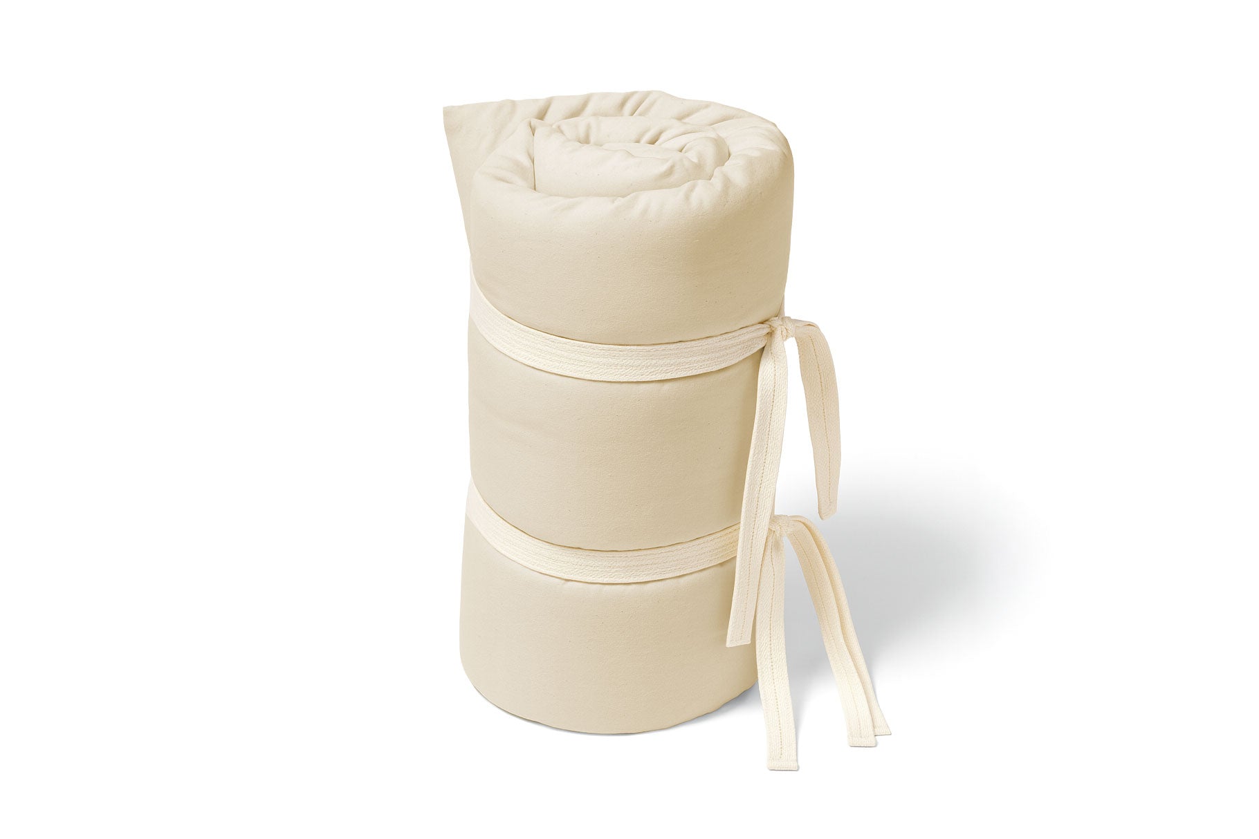 - Cotton straps sewn in for secure rolling and storage – one strap on Cot and Twin sizes, or two straps on Full and Queen.